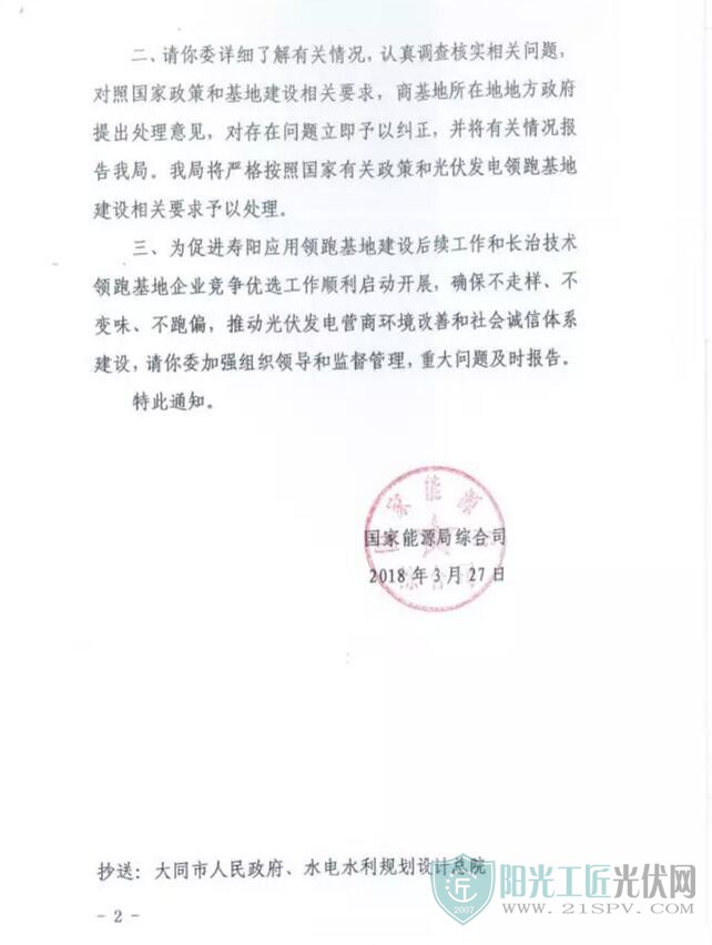 摘要:國家能源局發(fā)文否決大同二期領(lǐng)跑者基地中標結(jié)...