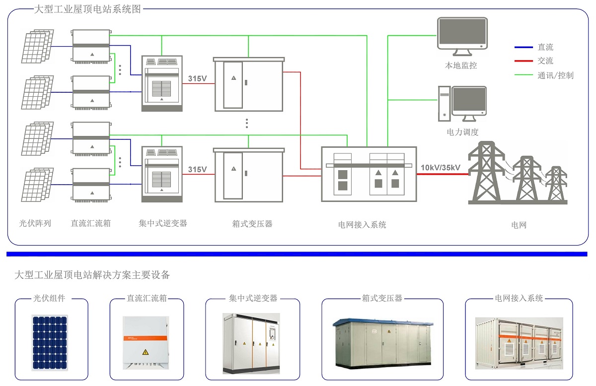 ?根據(jù)不同的項目條件和電量上網(wǎng)方式,我們提供0.4kV低壓并網(wǎng)解決方案和10kV 、35kV中壓并網(wǎng)解決方案。
